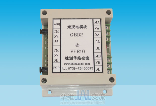 高压晶闸管整流器,输出电压高达数千伏,甚至上万伏,处于高压状态。而触发控制系统是低压弱电系统。为了保障触发系统安全,必需采取高压隔离措施,将高低压单元隔离。目前采用变压器隔离或光藕隔离方式能解决数千伏电压的隔离问题,但要隔离更高等级电压比较困难,也无法解决触发系统长距离传输过程中抗干扰问题。为了有效解决低压电路、高压电路的隔离问题,触发脉冲长距离传输过程中抗干扰问题,采用晶闸管光纤触发方案。晶闸管光纤触发方案是先将电的晶闸管触发信号转化为光信号,通过光纤实现信号远距离传输,然后将光信号转化为电信号触发高压晶闸管。光变电模块功能是,将光的控制信号转化为电的控制信号,控制高压晶闸管。